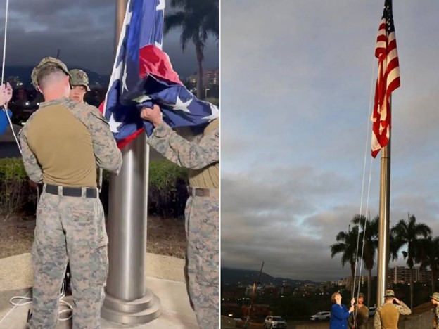 La bandera fue izada «exactamente siete años después de haber sido arriada», según informó el equipo de la Embajada de Estados Unidos en un comunicado publicado en sus redes sociales.