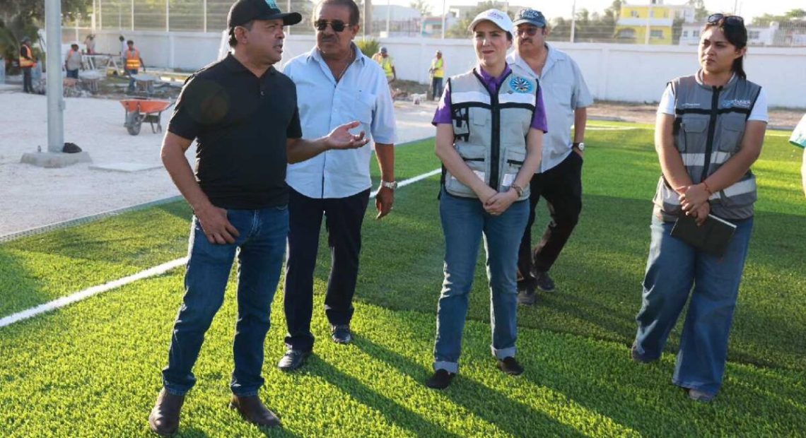 Supervisa Atenea Gómez Ricalde avances de cancha de fútbol en Isla Mujeres